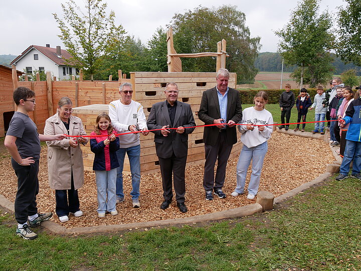 Mit einer offiziellen Eröffnung feierte die Kraichgauschule und die Grundschule Elsenz am Dienstag, den 30. Sep-tember 2025, die Einweihung ihrer neuen Spielgeräte auf dem Pausenhof. Die Bauarbeiten dazu begannen kurz vor den Sommerferien und wurden von vielen gespannten Blicken der Schüler begleitet. Die Freude nach den Ferien war dann umso größer: Zu sehen sind nun mehrere ansprechende Kletterkombinationen, Versteck-möglichkeiten und ein Labyrinth aus Holz, die zu vielseitigen Bewegungsmöglichkeiten einladen. Nachdem die Einweihung aufgrund des schlechten Wetters um fünf Tage verschoben werden musste, begann nun endlich der Spielspaß auch offiziell.